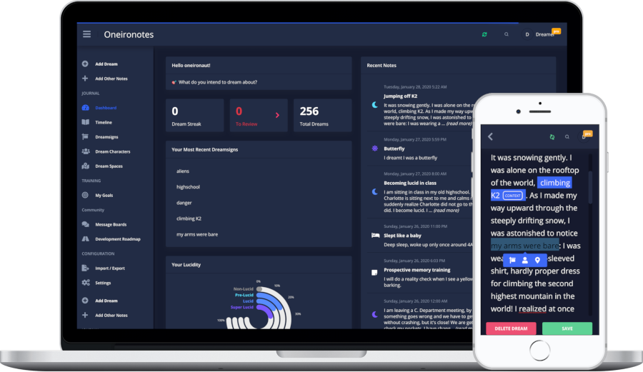 Much like becoming fit, developing your dream memory and becoming lucid mostly depends on your own, personal effort. However, just like a good gym and personal trainer can make it easier to become swole, so can Oneironotes help you master the art of oneironautics.